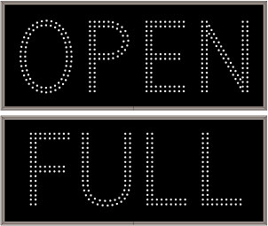 This TCL Series OPEN | FULL outdoor, blank-out sign is designed with super bright LEDs and a contrasting face; we guarantee it's readable in direct sunlight. The sign message is formed by visible LEDs on a black sign face and is designed to illuminate the message(s) when turned on and blank out or extinguish the message when off.