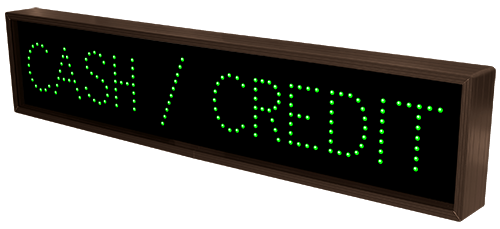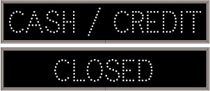 This TCL Series CASH / CREDIT | CLOSED outdoor, blank-out sign is designed with super bright LEDs and a contrasting face; we guarantee it's readable in direct sunlight. The sign message is formed by visible LEDs on a black sign face and is designed to illuminate the message(s) when turned on and blank out or extinguish the message when off.