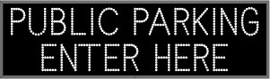 This TCL Series PUBLIC PARKING ENTER HERE (120-277VAC) outdoor, blank-out sign is designed with super bright LEDs and a contrasting face; we guarantee it's readable in direct sunlight. The sign message is formed by visible LEDs on a black sign face and is designed to illuminate the message(s) when turned on and blank out or extinguish the message when off.
