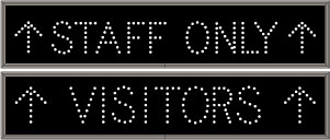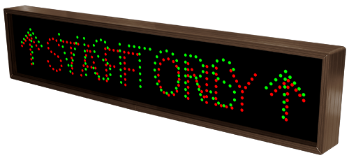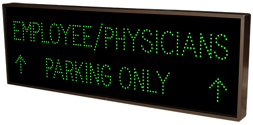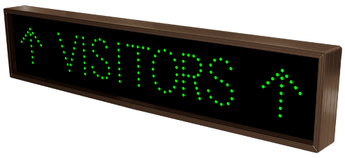 This TCL Series STAFF ONLY w/Up Arrows | VISITORS w/Up Arrows (120-277VAC) outdoor, blank-out sign is designed with super bright LEDs and a contrasting face; we guarantee it's readable in direct sunlight. The sign message is formed by visible LEDs on a black sign face and is designed to illuminate the message(s) when turned on and blank out or extinguish the message when off.