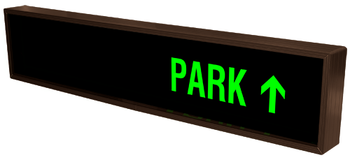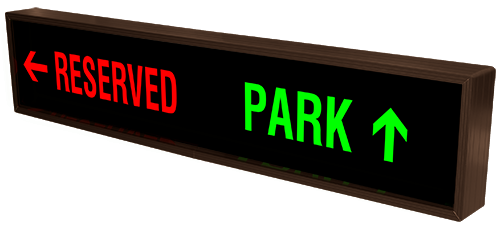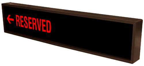 This PHX Series RESERVED w/Left Arrow | PARK w/Up Arrow (120-277VAC) outdoor, blankout sign is designed with high-intensity, LED reflected, backlit illumination and a block letter-style message face. The sign message illuminates when turned on and blanks out or extinguishes when off. PHX Series signs are guaranteed readable in direct sunlight.