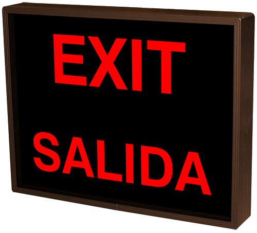 This PHX Series EXIT | SALIDA (120-277VAC) outdoor, blankout sign is designed with high-intensity, LED reflected, backlit illumination and a block letter-style message face. The sign message illuminates when turned on and blanks out or extinguishes when off. PHX Series signs are guaranteed readable in direct sunlight.