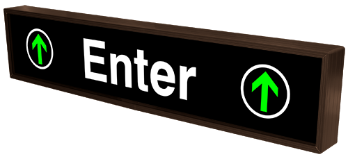 This PHX Series Up Arrow Enter Up Arrow (120-277VAC) outdoor, blankout sign is designed with high-intensity, LED reflected, backlit illumination and a block letter-style message face. The sign message illuminates when turned on and blanks out or extinguishes when off. PHX Series signs are guaranteed readable in direct sunlight.