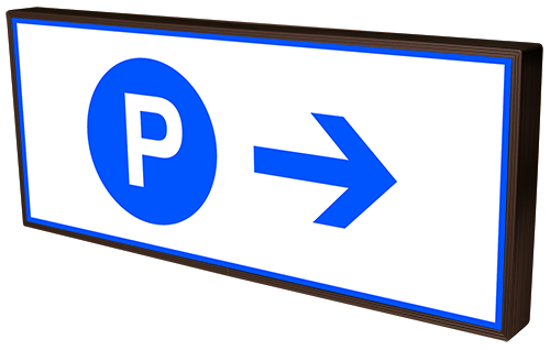 This PHXF Series Parking P w/Right Arrow outdoor sign is designed with high-intensity, LED reflected, backlit illumination and a block letter-style message face. The sign message is viewable in daylight conditions when off and can be illuminated at night or in low light conditions to optimize readability.