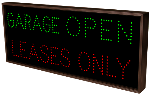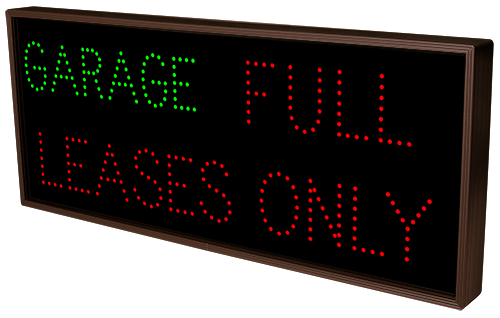 This TCL Series GARAGE | OPEN | FULL | LEASES ONLY (120-277VAC) outdoor, blank-out sign is designed with super bright LEDs and a contrasting face; we guarantee it's readable in direct sunlight. The sign message is formed by visible LEDs on a black sign face and is designed to illuminate the message(s) when turned on and blank out or extinguish the message when off.