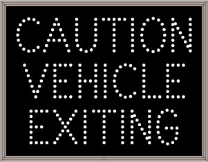 This TCL Series CAUTION VEHICLE EXITING (12-24VDC) outdoor, blank-out sign is designed with super bright LEDs and a contrasting face; we guarantee it's readable in direct sunlight. The sign message is formed by visible LEDs on a black sign face and is designed to illuminate the message(s) when turned on and blank out or extinguish the message when off.