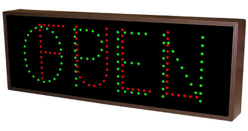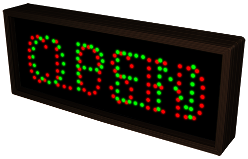 This TCL Series OPEN | CLOSED outdoor, blank-out sign is designed with super bright LEDs and a contrasting face; we guarantee it's readable in direct sunlight. The sign message is formed by visible LEDs on a black sign face and is designed to illuminate the message(s) when turned on and blank out or extinguish the message when off.
