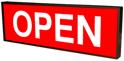 This PHXF Series OPEN outdoor sign is designed with high-intensity, LED reflected, backlit illumination and a block letter-style message face. The sign message is viewable in daylight conditions when off and can be illuminated at night or in low light conditions to optimize readability.