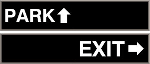 46598 (PHX734GR-M030/120-277VAC) PARK w/ Up Arrow | EXIT w/ Right Arrow (120-277 VAC) LED Sign