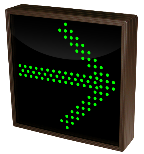 This TCL Series X | Right Arrow outdoor, blank-out sign is designed with super bright LEDs and a contrasting face; we guarantee it's readable in direct sunlight. The sign message is formed by visible LEDs on a black sign face and is designed to illuminate the message(s) when turned on and blank out or extinguish the message when off.