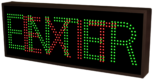 This TCL Series ENTER (120-277VAC) outdoor, blank-out sign is designed with super bright LEDs and a contrasting face; we guarantee it's readable in direct sunlight. The sign message is formed by visible LEDs on a black sign face and is designed to illuminate the message(s) when turned on and blank out or extinguish the message when off.