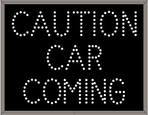 This TCL Series CAUTION CAR COMING outdoor, blank-out sign is designed with super bright LEDs and a contrasting face; we guarantee it's readable in direct sunlight. The sign message is formed by visible LEDs on a black sign face and is designed to illuminate the message(s) when turned on and blank out or extinguish the message when off.