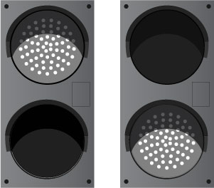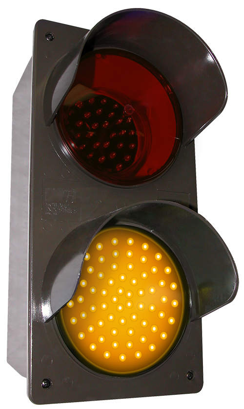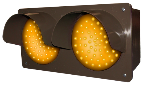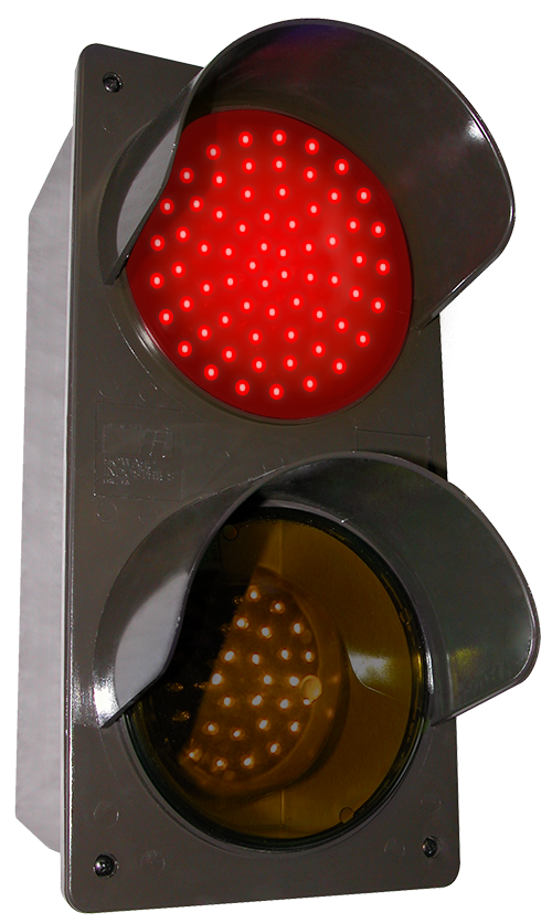 TCIL Series LED Traffic Controller, vertical. Features super bright, direct-view LEDs on a replaceable circuit board. Controller housing and hood construction is injection molded, impact resistant polycarbonate. Also includes two tinted lens covers.