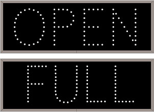 This TCL Series OPEN | FULL outdoor, blank-out sign is designed with super bright LEDs and a contrasting face; we guarantee it's readable in direct sunlight. The sign message is formed by visible LEDs on a black sign face and is designed to illuminate the message(s) when turned on and blank out or extinguish the message when off.