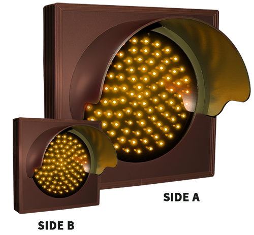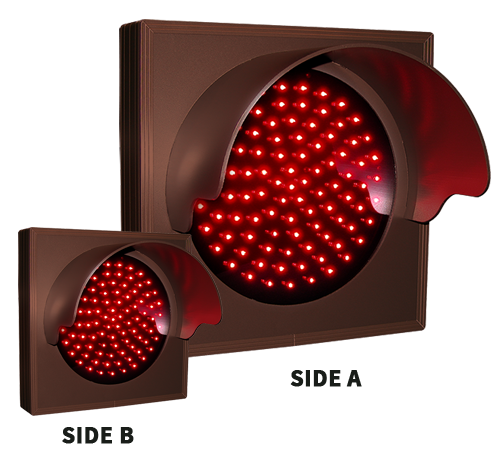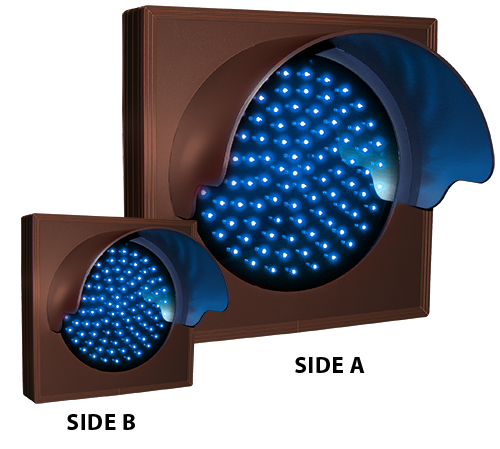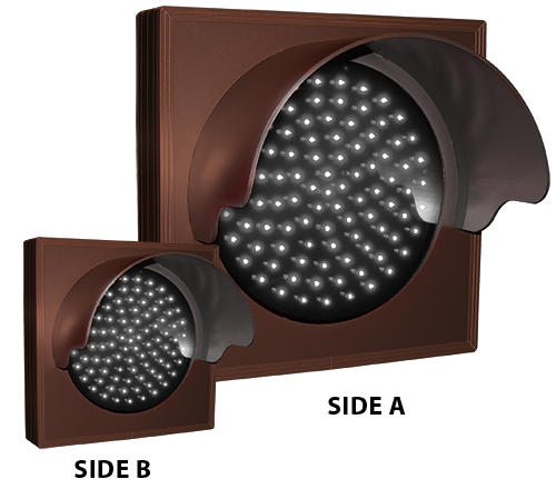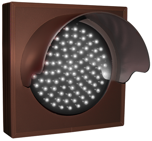 This TCL Series Indicator Dot, Single with Hoods and Optional Flashing, 4 in dia, White, Double Face outdoor, blank-out sign is designed with super bright LEDs and a contrasting face; we guarantee it's readable in direct sunlight. The sign message is formed by visible LEDs on a black sign face and is designed to illuminate the message(s) when turned on and blank out or extinguish the message when off.