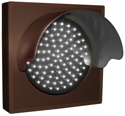 This TCL Series Indicator Dot, Single with Optional Flashing, 4 in dia, White, Double Face outdoor, blank-out sign is designed with super bright LEDs and a contrasting face; we guarantee it's readable in direct sunlight. The sign message is formed by visible LEDs on a black sign face and is designed to illuminate the message(s) when turned on and blank out or extinguish the message when off.