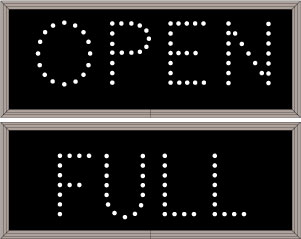 This TCL Series OPEN | FULL outdoor, blank-out sign is designed with super bright LEDs and a contrasting face; we guarantee it's readable in direct sunlight. The sign message is formed by visible LEDs on a black sign face and is designed to illuminate the message(s) when turned on and blank out or extinguish the message when off.
