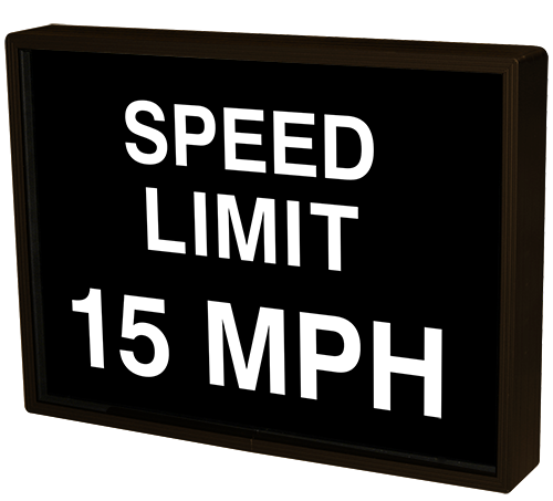This PHX Series SPEED LIMIT 15 MPH outdoor, blankout sign is designed with high-intensity, LED reflected, backlit illumination and a block letter-style message face. The sign message illuminates when turned on and blanks out or extinguishes when off. PHX Series signs are guaranteed readable in direct sunlight.