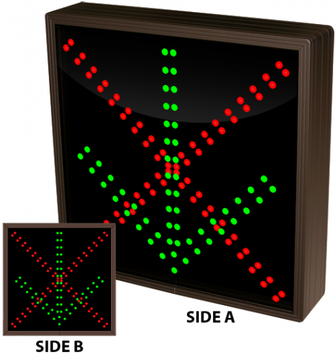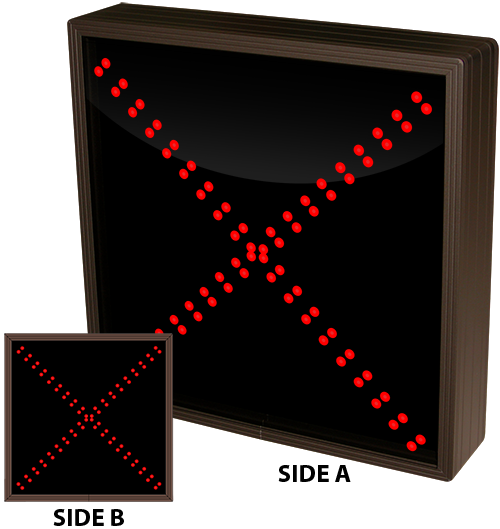 This TCL Series X | Down Arrow | X | Down Arrow (120-277VAC) outdoor, blank-out sign is designed with super bright LEDs and a contrasting face; we guarantee it's readable in direct sunlight. The sign message is formed by visible LEDs on a black sign face and is designed to illuminate the message(s) when turned on and blank out or extinguish the message when off.
