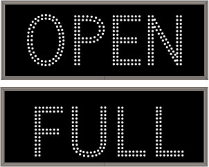 This TCL Series OPEN | FULL (120-277VAC) outdoor, blank-out sign is designed with super bright LEDs and a contrasting face; we guarantee it's readable in direct sunlight. The sign message is formed by visible LEDs on a black sign face and is designed to illuminate the message(s) when turned on and blank out or extinguish the message when off.