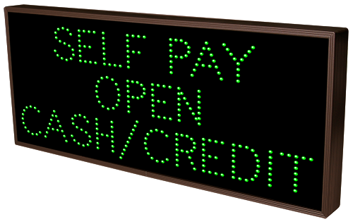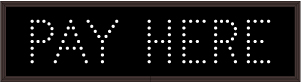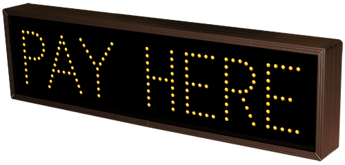 This TCL Series PAY HERE (120-277VAC) outdoor, blank-out sign is designed with super bright LEDs and a contrasting face; we guarantee it's readable in direct sunlight. The sign message is formed by visible LEDs on a black sign face and is designed to illuminate the message(s) when turned on and blank out or extinguish the message when off.