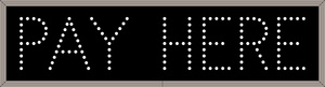 This TCL Series PAY HERE (120-277VAC) outdoor, blank-out sign is designed with super bright LEDs and a contrasting face; we guarantee it's readable in direct sunlight. The sign message is formed by visible LEDs on a black sign face and is designed to illuminate the message(s) when turned on and blank out or extinguish the message when off.