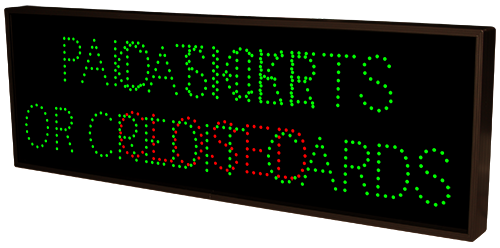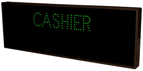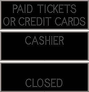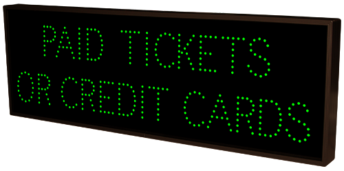 This TCL Series PAID TICKETS OR CREDIT CARDS | CASHIER | CLOSED (120-277VAC) outdoor, blank-out sign is designed with super bright LEDs and a contrasting face; we guarantee it's readable in direct sunlight. The sign message is formed by visible LEDs on a black sign face and is designed to illuminate the message(s) when turned on and blank out or extinguish the message when off.