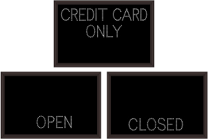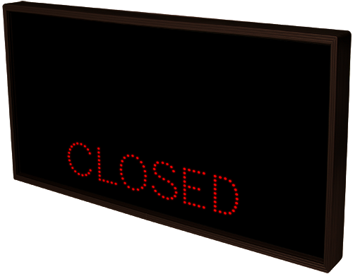 This TCL Series CREDIT CARD ONLY | OPEN | CLOSED (120-277VAC) outdoor, blank-out sign is designed with super bright LEDs and a contrasting face; we guarantee it's readable in direct sunlight. The sign message is formed by visible LEDs on a black sign face and is designed to illuminate the message(s) when turned on and blank out or extinguish the message when off.