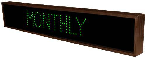 This TCL Series MONTHLY | CREDIT CARD ONLY (12-24VDC) outdoor, blank-out sign is designed with super bright LEDs and a contrasting face; we guarantee it's readable in direct sunlight. The sign message is formed by visible LEDs on a black sign face and is designed to illuminate the message(s) when turned on and blank out or extinguish the message when off.