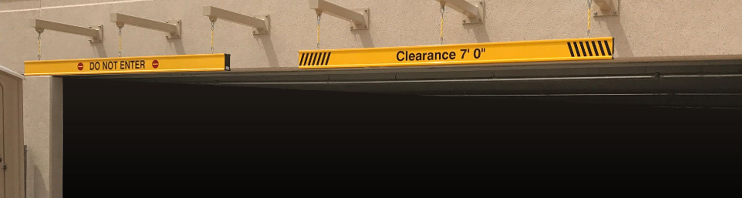 Clearance bars are used to alert motorists to clearance-height restricted areas. These free-hanging low clearance bars can also be used to show important messages like overhead wayfinding directions and lane use designations. Promote safety and protect your building by including clearance bars at your facility.