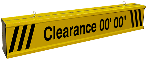 The IBAR-C Series clearance bar is a single-piece, 7" x 2.5" extruded aluminum system. Includes Easyglide Adjustable Eyebolts for top mounting. Painted traffic yellow and displays your required message in factory-applied, high-performance reflective vinyl (Black reflective vinyl is standard). Custom paint colors and graphics are available upon request.
