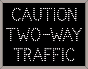 This TCL Series CAUTION TWO-WAY TRAFFIC (120-277VAC) outdoor, blank-out sign is designed with super bright LEDs and a contrasting face; we guarantee it's readable in direct sunlight. The sign message is formed by visible LEDs on a black sign face and is designed to illuminate the message(s) when turned on and blank out or extinguish the message when off.