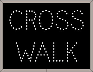 This TCL Series CROSS WALK (120-277VAC) outdoor, blank-out sign is designed with super bright LEDs and a contrasting face; we guarantee it's readable in direct sunlight. The sign message is formed by visible LEDs on a black sign face and is designed to illuminate the message(s) when turned on and blank out or extinguish the message when off.