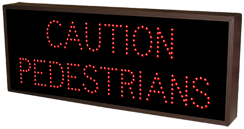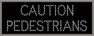 This TCL Series CAUTION PEDESTRIANS (120-277VAC) outdoor, blank-out sign is designed with super bright LEDs and a contrasting face; we guarantee it's readable in direct sunlight. The sign message is formed by visible LEDs on a black sign face and is designed to illuminate the message(s) when turned on and blank out or extinguish the message when off.