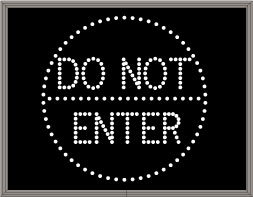 This TCL Series DO NOT ENTER w/Do Not Enter Symbols (120-277VAC) outdoor, blank-out sign is designed with super bright LEDs and a contrasting face; we guarantee it's readable in direct sunlight. The sign message is formed by visible LEDs on a black sign face and is designed to illuminate the message(s) when turned on and blank out or extinguish the message when off.