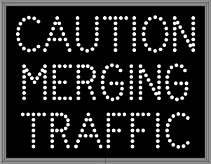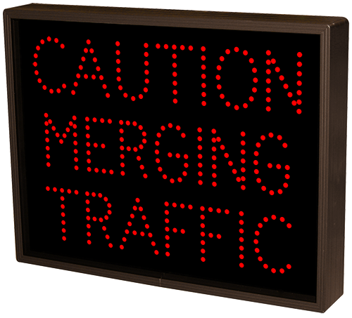 This TCL Series CAUTION MERGING TRAFFIC (120-277VAC) outdoor, blank-out sign is designed with super bright LEDs and a contrasting face; we guarantee it's readable in direct sunlight. The sign message is formed by visible LEDs on a black sign face and is designed to illuminate the message(s) when turned on and blank out or extinguish the message when off.