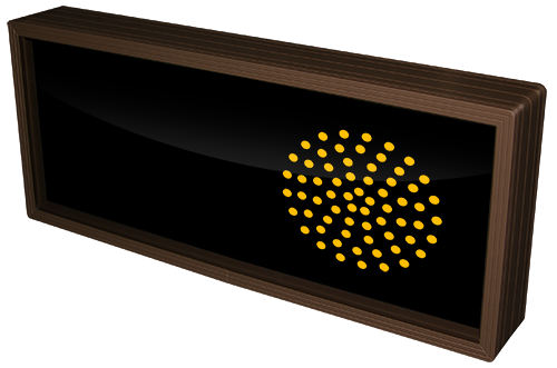 This TCL Series Indicator Dots, Double, Horizontal, 4 in dia, Amber - Amber (120-277VAC) outdoor, blank-out sign is designed with super bright LEDs and a contrasting face; we guarantee it's readable in direct sunlight. The sign message is formed by visible LEDs on a black sign face and is designed to illuminate the message(s) when turned on and blank out or extinguish the message when off.