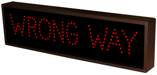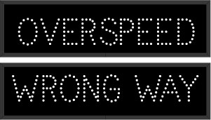 This TCL Series OVERSPEED | WRONG WAY outdoor, blank-out sign is designed with super bright LEDs and a contrasting face; we guarantee it's readable in direct sunlight. The sign message is formed by visible LEDs on a black sign face and is designed to illuminate the message(s) when turned on and blank out or extinguish the message when off.