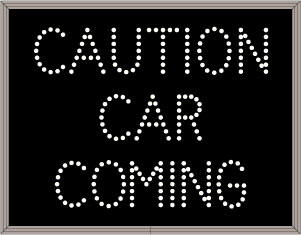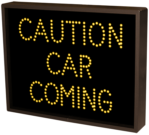 This TCL Series CAUTION CAR COMING (120-277VAC) outdoor, blank-out sign is designed with super bright LEDs and a contrasting face; we guarantee it's readable in direct sunlight. The sign message is formed by visible LEDs on a black sign face and is designed to illuminate the message(s) when turned on and blank out or extinguish the message when off.