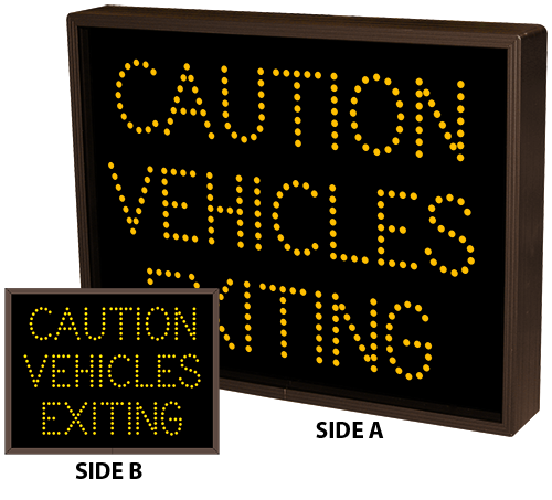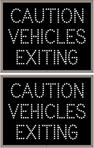 This TCL Series CAUTION VEHICLES EXITING outdoor, blank-out sign is designed with super bright LEDs and a contrasting face; we guarantee it's readable in direct sunlight. The sign message is formed by visible LEDs on a black sign face and is designed to illuminate the message(s) when turned on and blank out or extinguish the message when off.