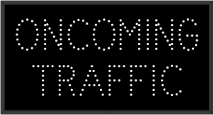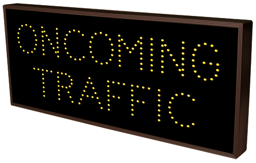 This TCL Series ONCOMING TRAFFIC (120-277VAC) outdoor, blank-out sign is designed with super bright LEDs and a contrasting face; we guarantee it's readable in direct sunlight. The sign message is formed by visible LEDs on a black sign face and is designed to illuminate the message(s) when turned on and blank out or extinguish the message when off.
