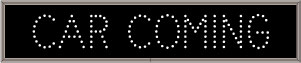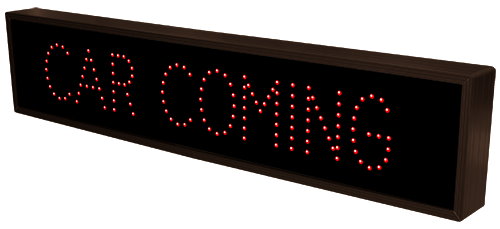 This TCL Series CAR COMING (12-24VDC) outdoor, blank-out sign is designed with super bright LEDs and a contrasting face; we guarantee it's readable in direct sunlight. The sign message is formed by visible LEDs on a black sign face and is designed to illuminate the message(s) when turned on and blank out or extinguish the message when off.