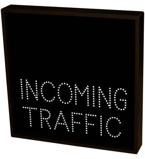 This TCL Series STOP | INCOMING TRAFFIC (120-277VAC) outdoor, blank-out sign is designed with super bright LEDs and a contrasting face; we guarantee it's readable in direct sunlight. The sign message is formed by visible LEDs on a black sign face and is designed to illuminate the message(s) when turned on and blank out or extinguish the message when off.