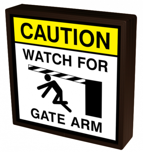This PHXF Series CAUTION WATCH FOR GATE ARM w/ Gate Hazard Symbol outdoor sign is designed with high-intensity, LED reflected, backlit illumination and a block letter-style message face. The sign message is viewable in daylight conditions when off and can be illuminated at night or in low light conditions to optimize readability.