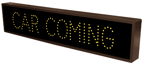 This TCL Series CAR COMING (120-277VAC) outdoor, blank-out sign is designed with super bright LEDs and a contrasting face; we guarantee it's readable in direct sunlight. The sign message is formed by visible LEDs on a black sign face and is designed to illuminate the message(s) when turned on and blank out or extinguish the message when off.