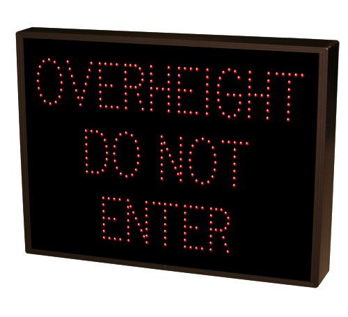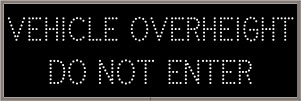 This TCL Series VEHICLE OVERHEIGHT DO NOT ENTER outdoor, blank-out sign is designed with super bright LEDs and a contrasting face; we guarantee it's readable in direct sunlight. The sign message is formed by visible LEDs on a black sign face and is designed to illuminate the message(s) when turned on and blank out or extinguish the message when off.