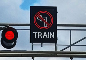 LED preemptive train crossing signs, installed at railroad and pedestrian crossings, alert the public to approaching train traffic. Secondary warning LED train crossing signs at transit stations and railroad crossings have been shown to enhance public safety.