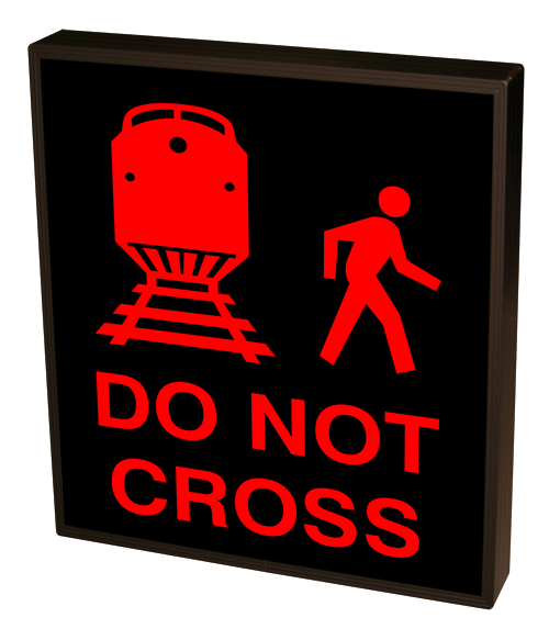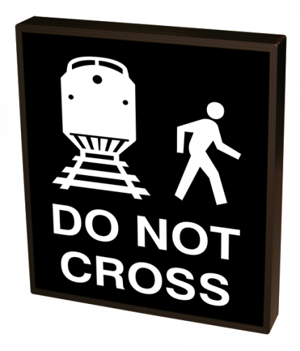 This PHX Series Train Symbol Pedestrain DO NOT CROSS | Train Symbol Pedestrain DO NOT CROSS outdoor, blankout sign is designed with high-intensity, LED reflected, backlit illumination and a block letter-style message face. The sign message illuminates when turned on and blanks out or extinguishes when off. PHX Series signs are guaranteed readable in direct sunlight.