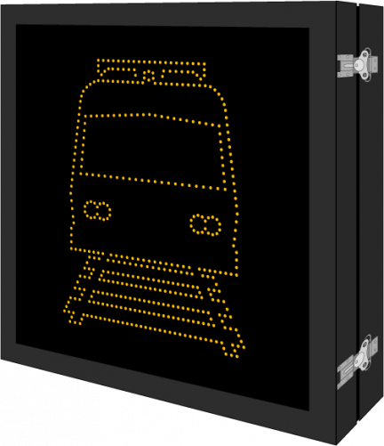 This DOT Series W10-7 Light Rail Symbol sign is a direct-view LED design that illuminates when activated and blanks out when deactivated. Outside cabinet dimensions are 29.000" x 29.000" x 6.500".