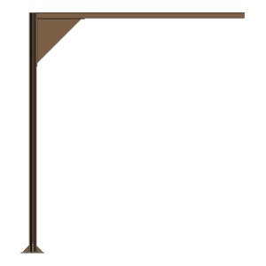 The Mast Arm Post mount is constructed using two individual posts that intersect at 90 degrees. The upright is a 4" x 4" extruded aluminum posts with 12" x 12" welded base plate. Base plate is a 3/8" thick aluminum plate with predrilled anchoring holes and 4 - 4" high welded gussets. The horizontal is a 2.25" x 3" post. The upright and horizontal posts are secured using a structural gusset that is an 18"h x 18"w x 3/8"d aluminum plate. Finish is Duranodic Bronze, unless otherwise noted. For use with a single Clearance I-Bar up to 6ft long only.